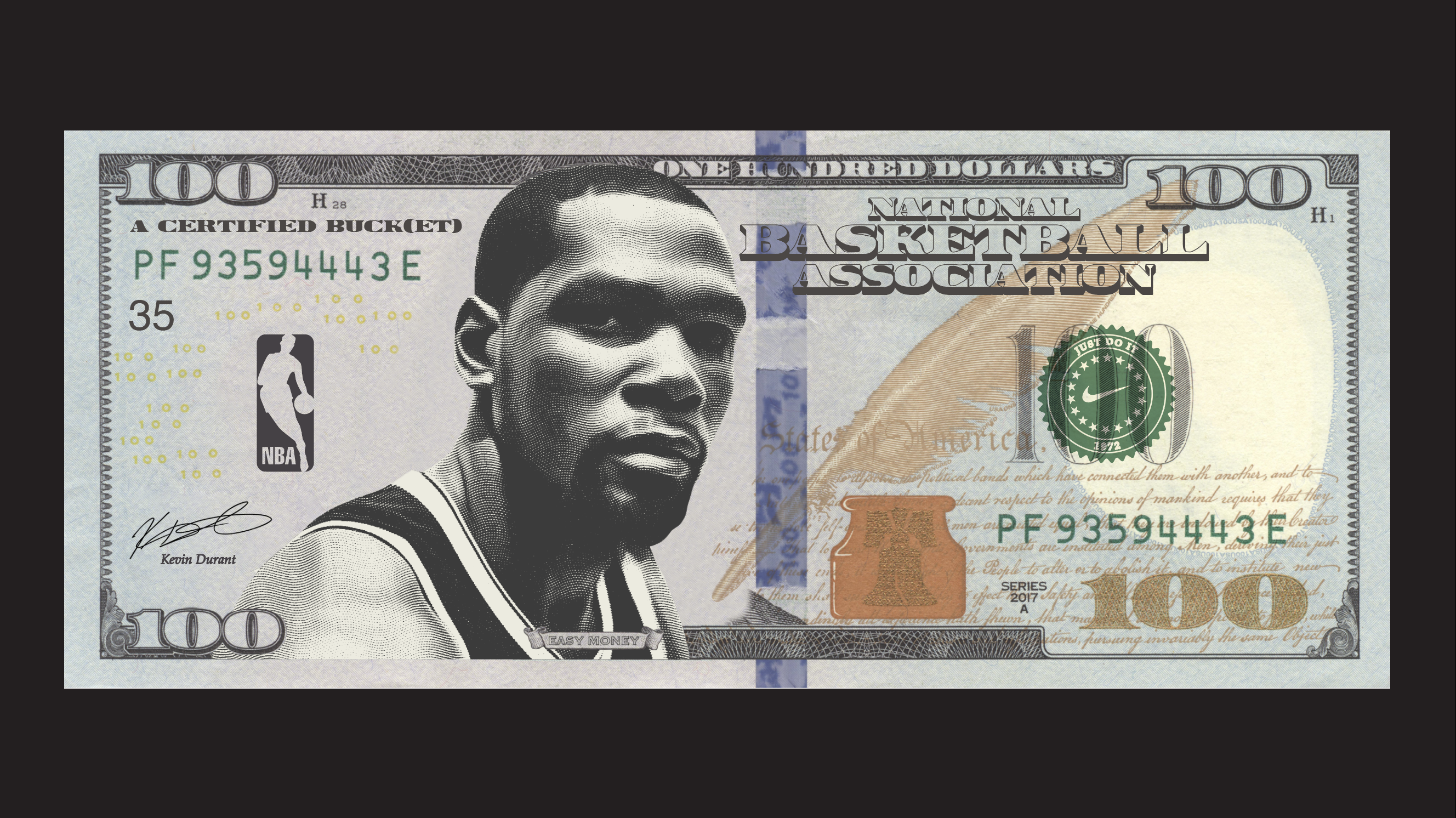 Detail of Andriw’s design for KD dollars we printed to film No Money Like Easy Money, 2025.